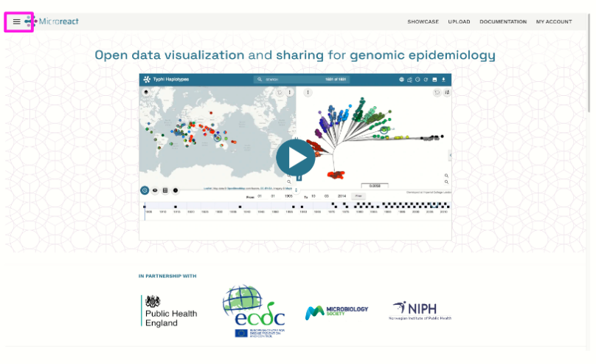 Display additional menu options. It can be found either within individual panels, or at the top left of your microreact account. |